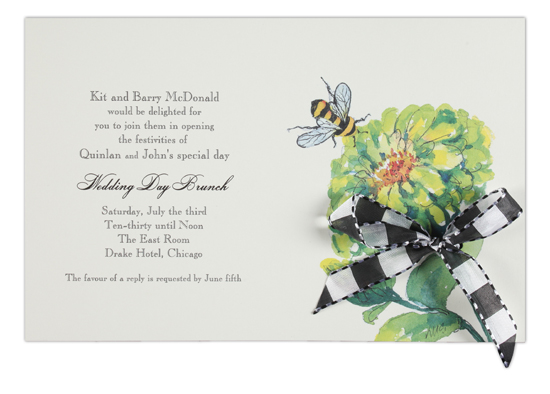 We are abuzz about the special event to which this card invites. Do you have a co-worker or employee who deserves some recognition in your company? Then why not host a luncheon dedicated to that special someone, who is always willing to lend a hand, and going the extra mile to give their best work. Find some fun and charming invitations for an appreciation luncheon on Polka Dot Design's stationery store, where there is a card for any occasion. This Green Zinnia Invitation created by Odd Balls will definitely well-received by everyone in the office. Odd Balls is a customer favorite brand on the website. Their cards all feature lovely water color prints that will warm guests' hearts and charm their eyes. This design features a lovely green poesy, with a black and white ribbon attached to the stem. A busy bumble bee buzzes by to collect some of the flower's pollen. Order these charming invitations today, and get ready for a wonderful appreciation luncheon?
